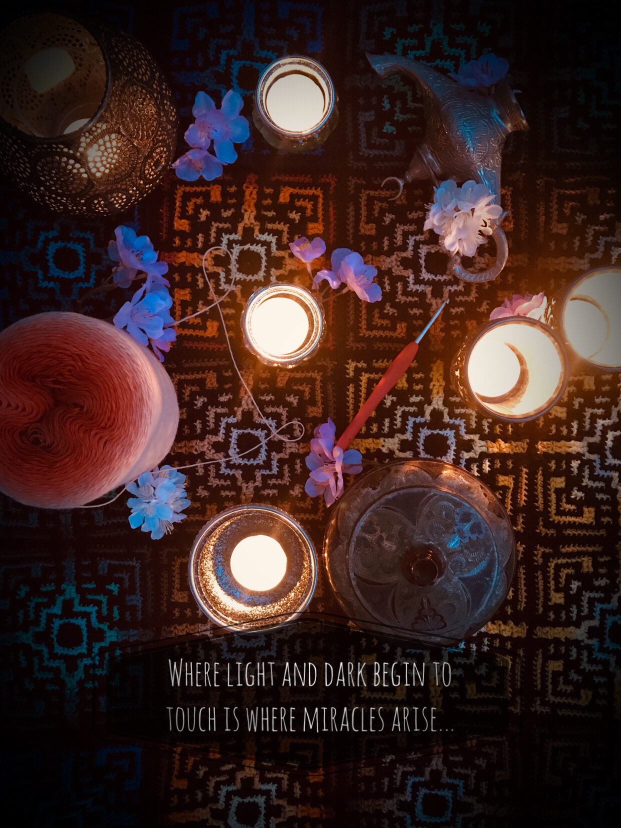 But….there is one positive thing i can write down. As the above photo says….when dark and light begin to touch is where miracles begin to happen. One thing i did see happen in these months when the dark and lighter moments are changing each other off like the seasons, is that beautiful ideas are being created. The best ideas and patterns came out of these moments and so it isnt all for nothing. Thats what i try to think when i get really depressed. And thats why i’m sure there will be born something new and amazing out of this depth as well.