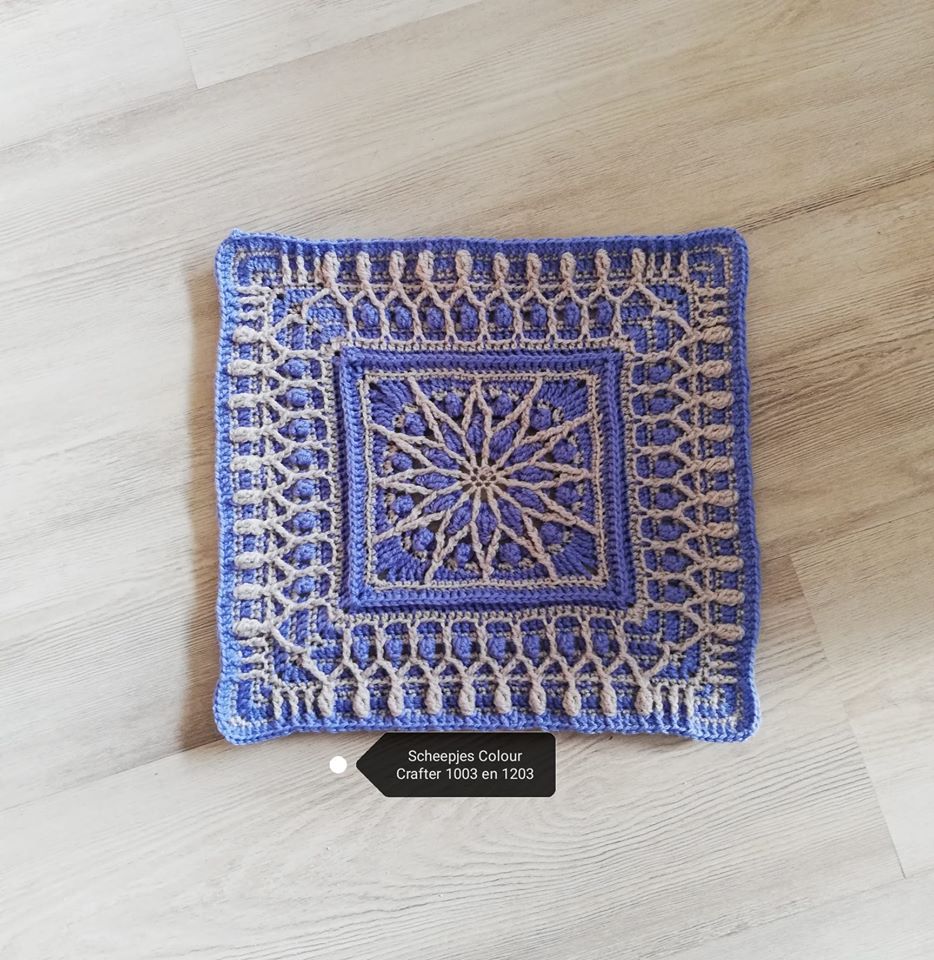 The pattern was also tested by my dear crochet friends Tineke Tap and Anna Nilson. Tineke made a test square with two colors of Scheepjes Colour Crafter, where Anna has decided to crochet a baby blanket out of this pattern. She is producing some squares at the moment as you can see under here.