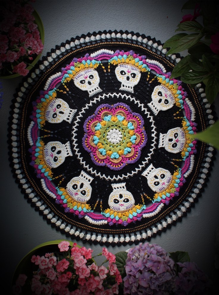 It is time to announce for the last time a Part is ready for the Dia de los Muertos CAL. Part 4 is now available and will make it possible to finish up your project. In Part 4 we will bring back color into the pattern and you will crochet a border. Also we will make some nice decorations with some simple embroidery stitches on the skulls. You can find Part 4 here.