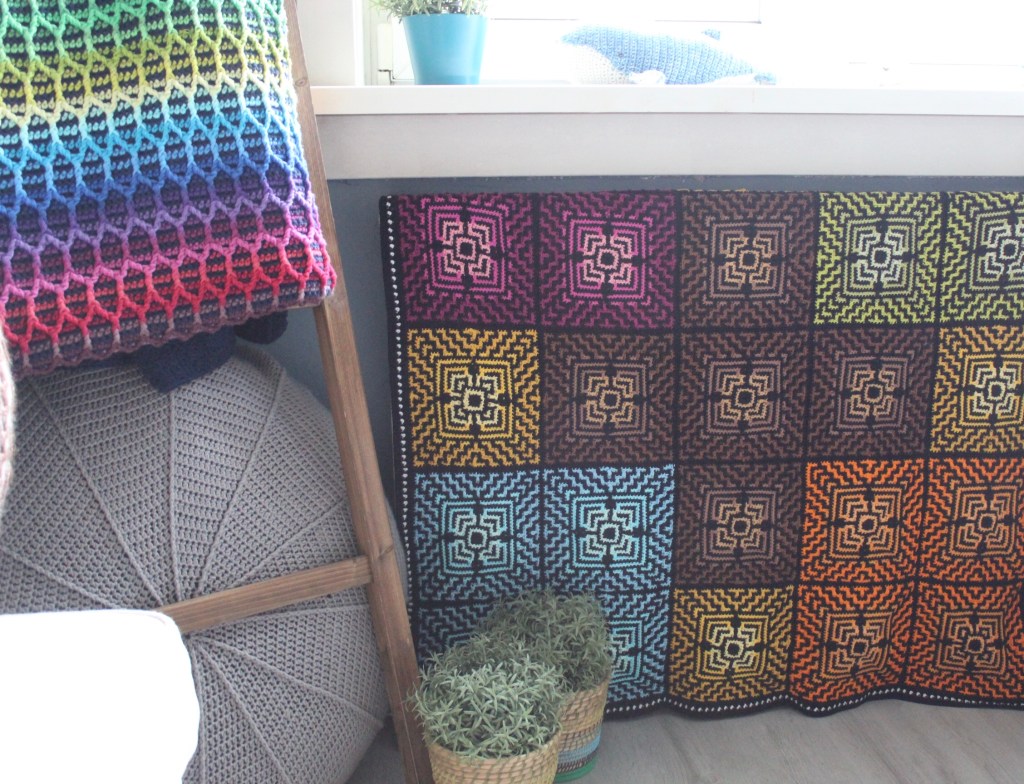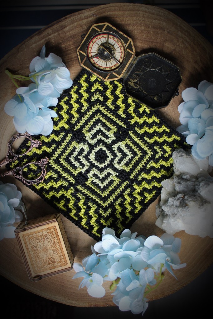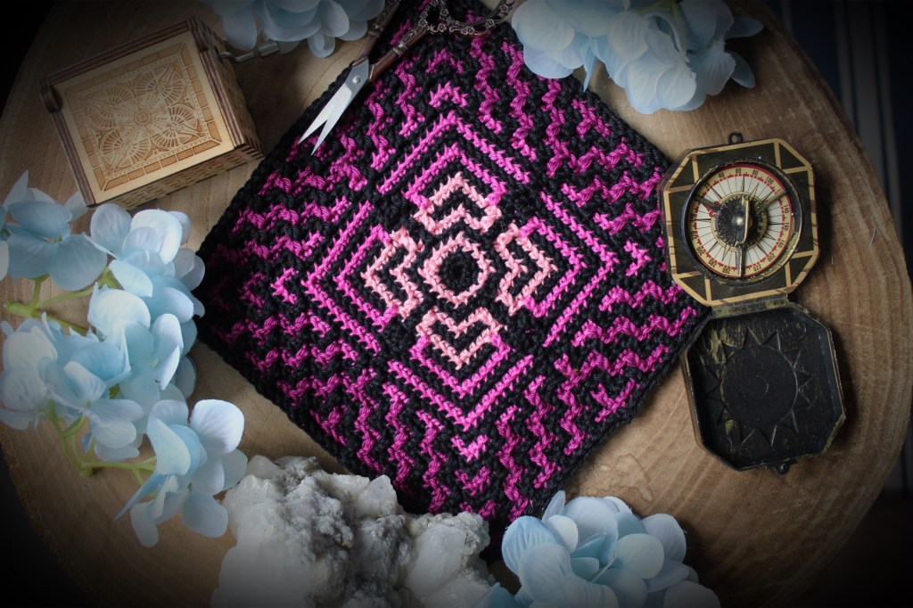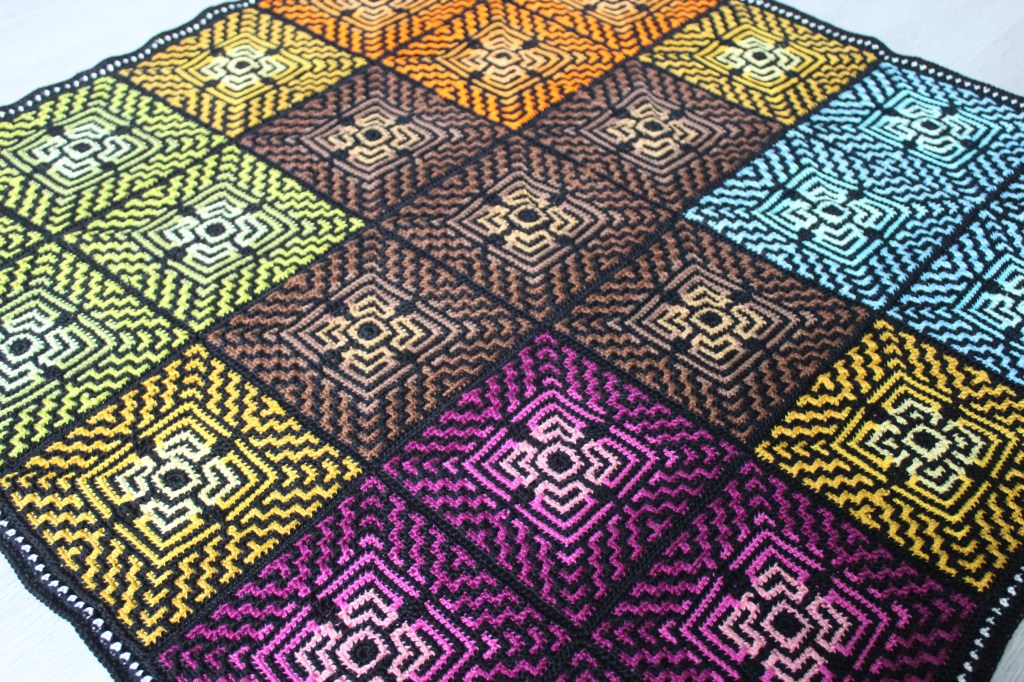 It has been a long time for me to announce and publish a new pattern. But to start with I felt it might be a good thing to start with another mosaic tile pattern. The fourth tiles pattern actually as we had the Medina Mosaic Tiles, the Tibet Tiles and the Northern Tiles before this. As we just have the Dia de los Muertos Crochet-a-long behind us which has everything to do with Mexican heritage and culture…I thought to extend this feeling a little longer with this new pattern which highlights some of Mexico’s most iconic places or subjects. The tile itself is designed with in the middle an extending square which might look like a Maya temple from above with its layers. The maze lines around them can also be found in old and historical images and items out of the Aztek. In this way I also preserved a little history in the pattern. The colors are based on different aspects of Mexico. In the middle you will find the brown center which stands for Sierra Madre which spreads itself in the four ways of the country.