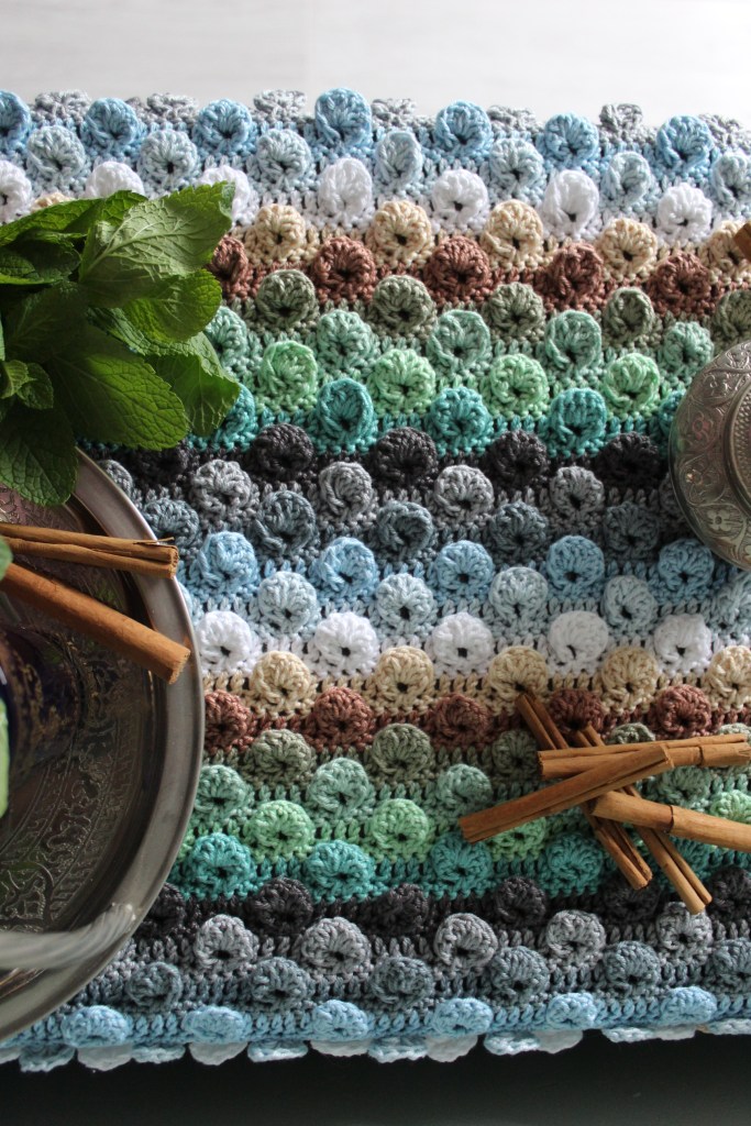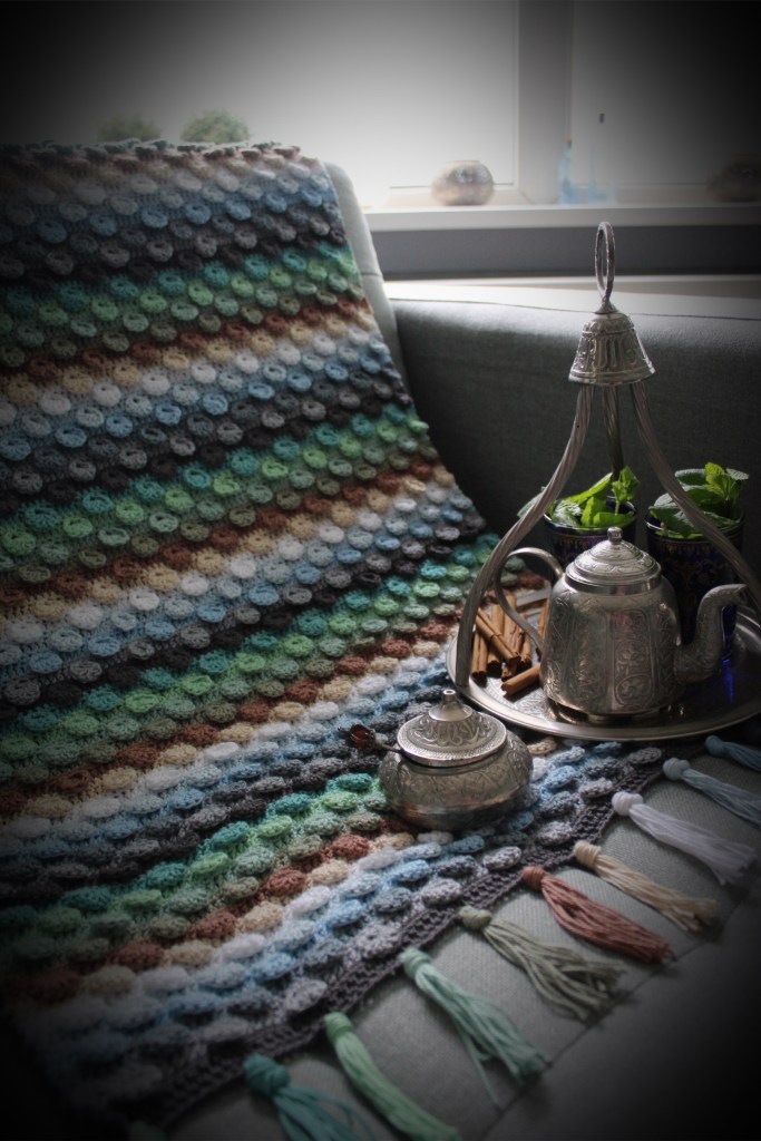 Yup it is again time for a new pattern ! And it is actually a simple one as this is just a solid stitch which you can work in any way you like. You can take your own colors and as many as you like for this pattern…but as you can see on the photos, a lot of color works great on this pattern as the little “bulbs” fall downwards over the previous color. In this way the colors really blend. If you want to make it easier you can also take a gradient yarn I pressume. Anyways….first I will write a short introduction about this pattern.