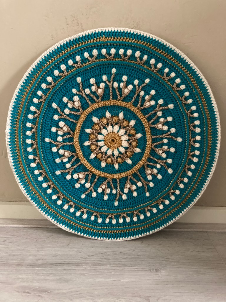 - the pattern is build up out of the regular crochet terms. Special stitches will be a popcorn stitch, a puff stitch, and some front and back post stitches.