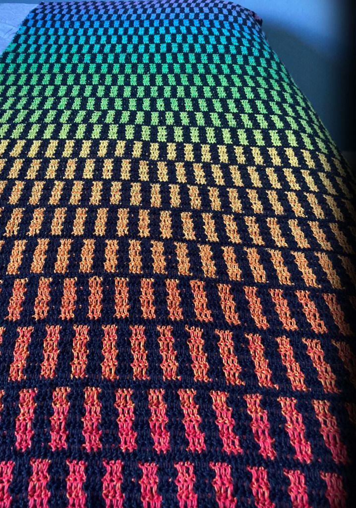 And how did the name of this pattern come to my mind? Well, as I had so many possible ideas in mind to name this baby, I couldn’t decide on which one I had to pick. So, I asked you guys on my social media to go crazy and think of names for this one. Well, and you were surprised by coming up with hundreds of titles. Most of them had some similar things and ideas, which I found very useful. Some were very clever, but its concept was just too unfamiliar for us as it was peculiar. So, I have scrolled down through all comments, and I think I haven’t found this title I combined out of different input. Many of you said it looked like codes – or code language. In this virtual age, our technology has its own code, and it often is displayed in stripes. Besides that, there were many options with the Rainbow instead. So, I made the combination, and here is Code of the Rainbow. Thank you all so much for thinking along with this one.