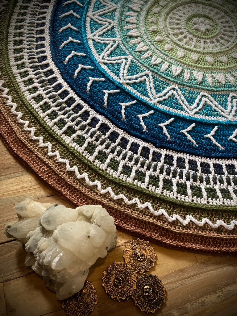 The Aztek artifact crochet pattern came to my mind after watching a documentary about newly found and discovered artifacts that belong to the Maya civilization. Especially the golden discs, which are decorated with so many small geometric decorations, and the golden coins caught my attention. My mind immediately started translating these objects into a new crochet pattern, resulting in this Aztek Artifact pattern. This wonderful pattern is very diverse and colorful to work on.