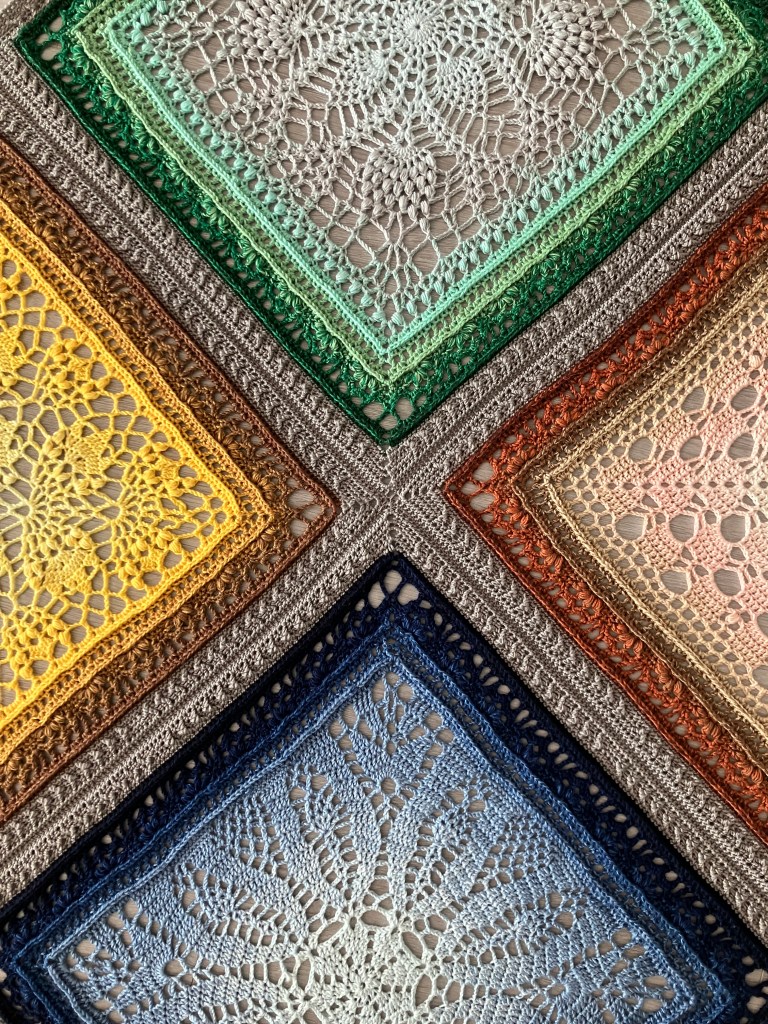The theory of the five elements is the pattern highlighted in the third edition of TGWTH magazine. It combines four individual patterns that can be crocheted individually or combined to make a wonderful bedspread.
