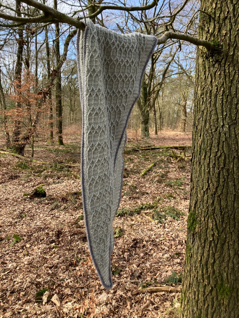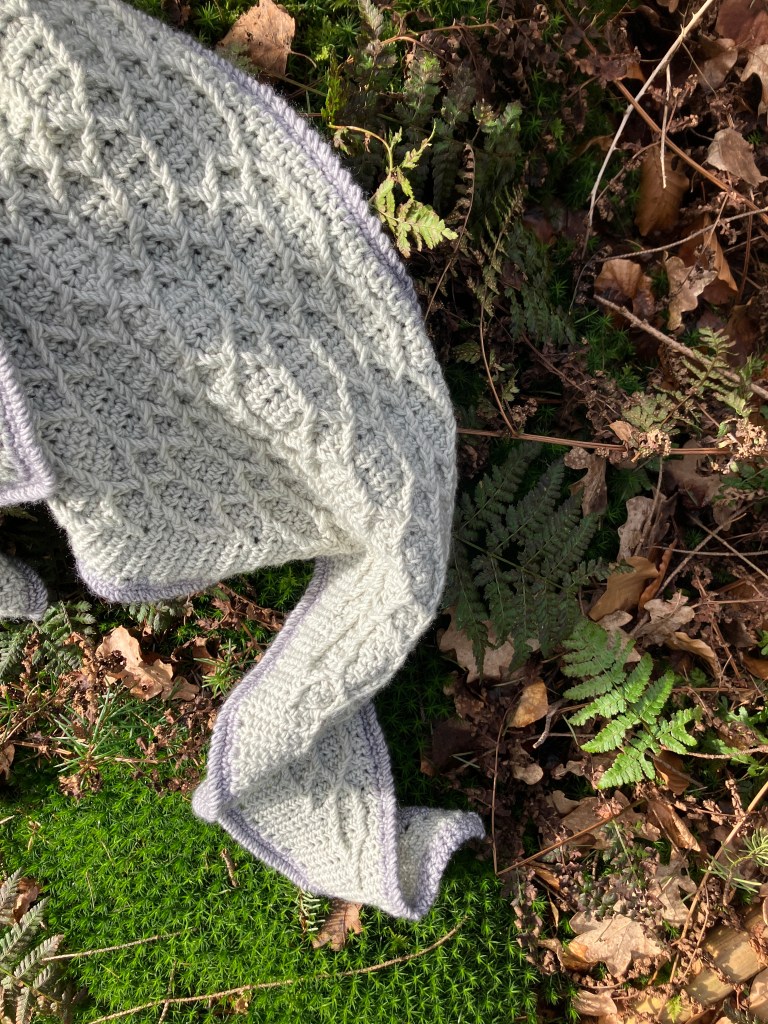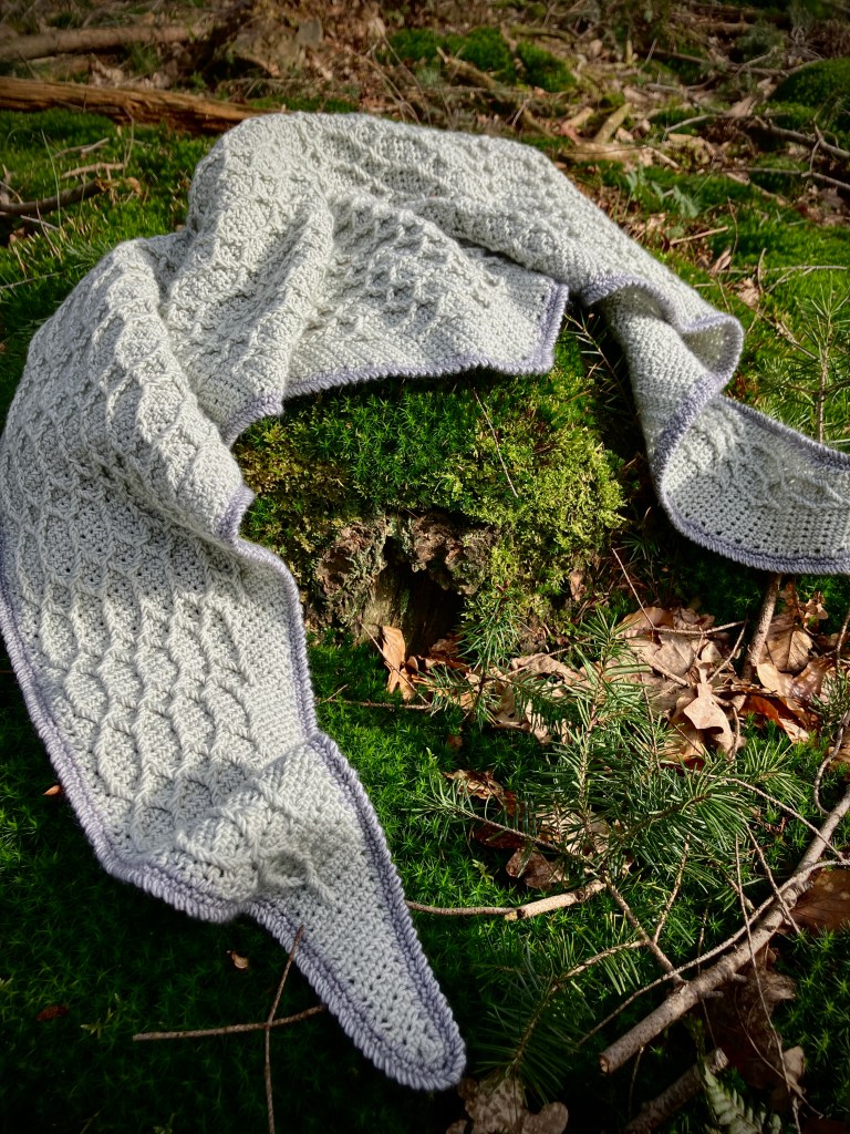 Most of you might know the famous stone circles in Scotland and Ireland. But those who know the stories of Diana Gabaldon – also known as Outlander, will recognize the title even better. In the story of Outlander, this stone circle is called Craigh na Dun, and it is a gateway for time traveling. I love the stories so much, and the stones in this formation are a bit pointy and differently shaped than other historical places of stone. The pointed shapes made me think of creating a textured pattern that refers to this and gives that natural highland feeling. I created a lovely shawl with a perfectly symmetric shape.