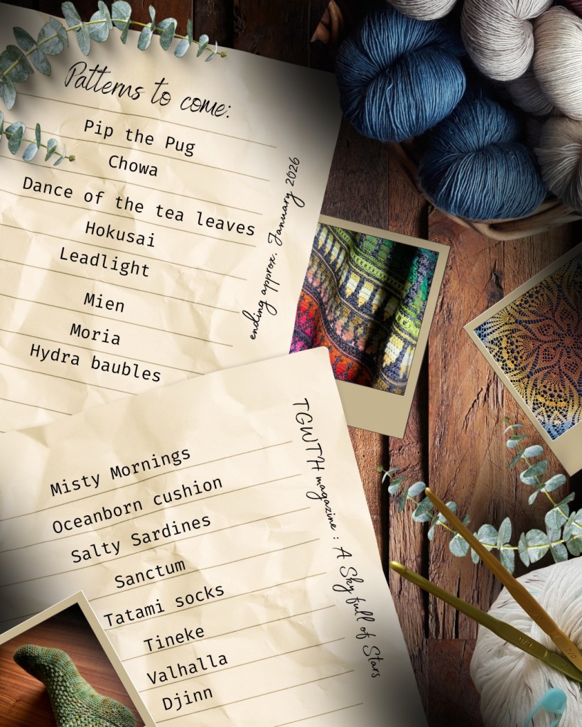 So, I haven’t been designing for a while now— although you didn’t even notice. Crocheting and knitting are mainly things I do to relax for now, and I intend to keep it this way over the next two years. But… I have a full library of patterns ready for release left, which I, of course, won’t keep as they are all way too pretty and fun to keep for myself. So, over this year, I will release all the last patterns I created last year (you can see all the names on the image already). I intend to release all of them before this year is over, so there will be a pause next year.