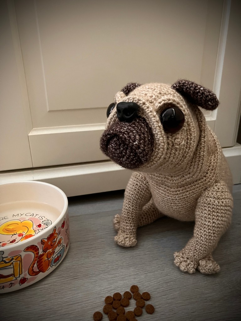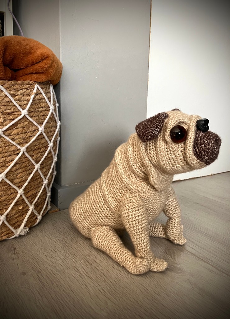 A bit of creativity is definitely needed to crochet and construct this pug. I have added several photos to guide you, but the placement of body parts also requires a bit of creative input and a good eye for position. I did my best to point it all out, but you also have to use your sight and creativity to make the best version of it.