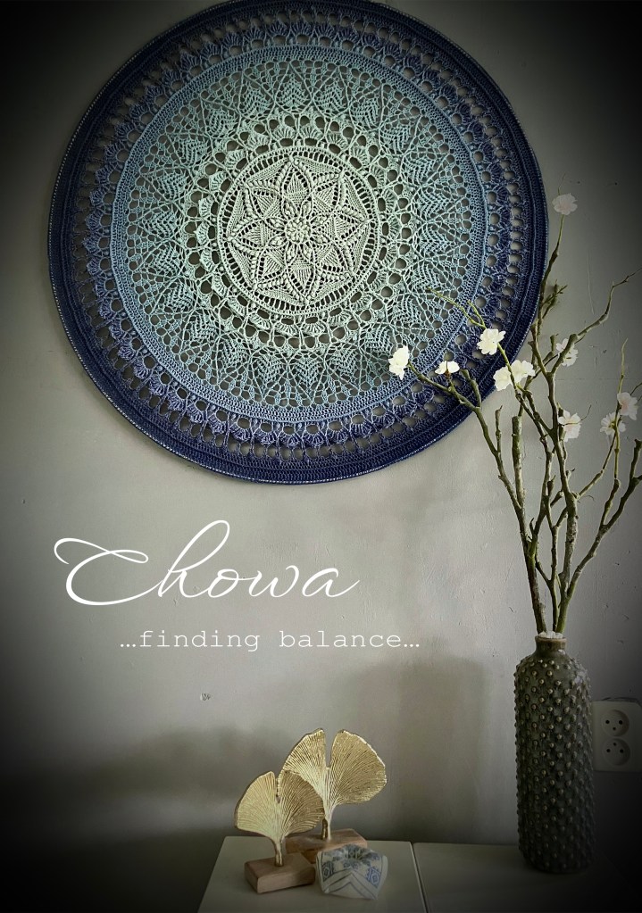 Chowa is a Japanese word that refers to seeking balance in life. Maybe the most common thing we search for as human beings in a world that is getting busier and evolving as we speak. I am always searching for a balance in my personal life. I often notice that different things or thoughts can control me as a person way too much – and these things are, most of the time, negative thoughts like comments or opinions made by others. Most of the time, I restore myself by crocheting and returning to my little world of stitches and yarn. This pattern is born out of a time when my little world was needed, and to find my balance once more, in those moments I let the stitches decide the way…resulting in this piece of art.