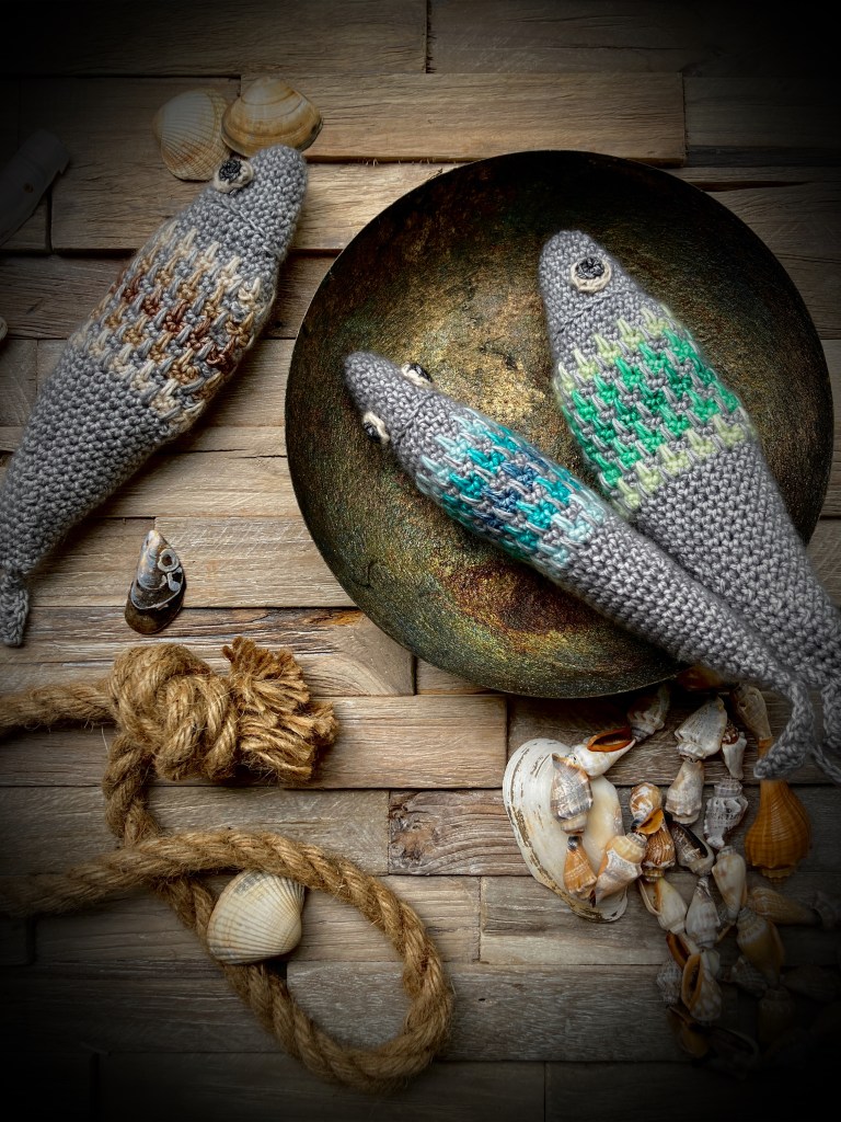 I am always in the mood for something sea-related. After creating the Jolly Jellyfish pattern, I felt more sea-related patterns would come up. So, meet the Salty Sardines—a fun and quick pattern to make and perfect to use up some scraps. Make them in every color of the rainbow and create as many as you like to create a whole flock of sardines! They are perfect for decorating your home; hang them with a small thread in front of the window, lay them in a bowl in the kitchen, or make one in a robust cotton type of yarn as a playing toy for your cat! Options are endless! Enjoy this fun and cute pattern!