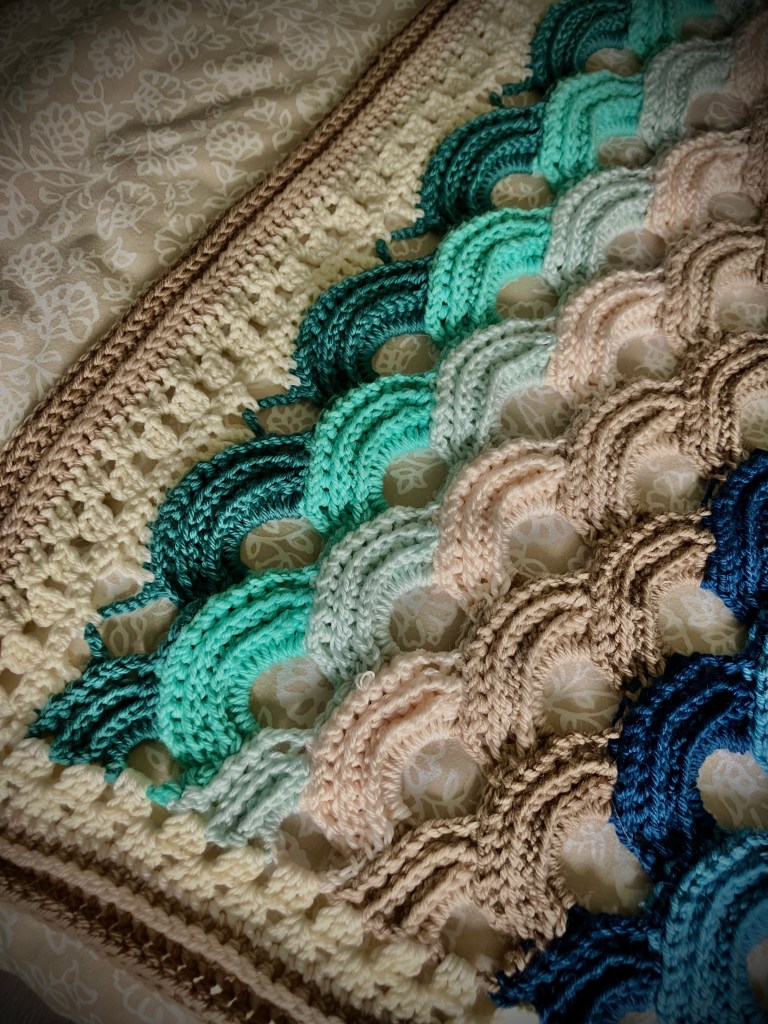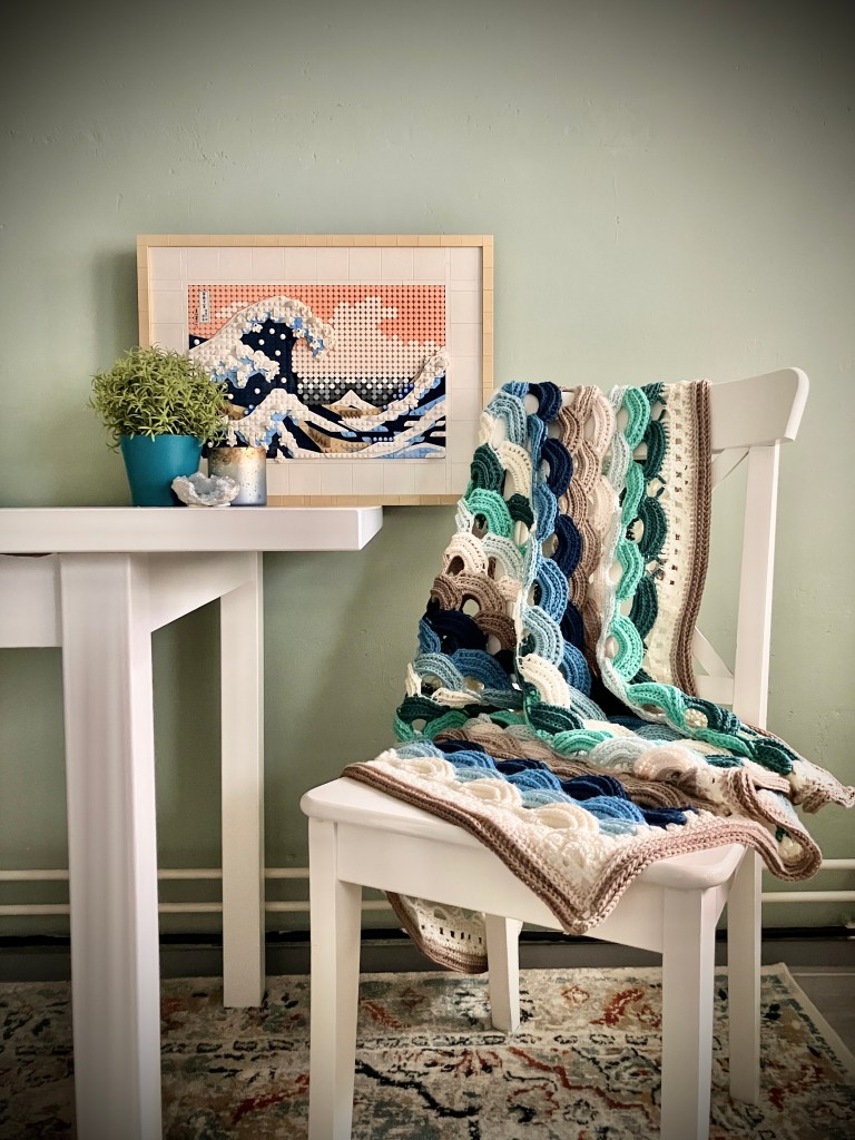 n my second book, Gallery, I made the Great Wave pillow. For this pattern, I took inspiration from the painting created by Hokusai, which has the same name. This painting has always fascinated me with its colors, drawings, the story behind it, and most of all – the painter itself. So, when it comes to inspiration, I wasn’t finished by just making a yoga pillow for the second book. There was so much more inspiration to use the motifs of a wave. I created this very textured and thick pattern, which creates a blanket that is instantly the eye-catcher of the room. The pattern can be made as wide and long as you please.