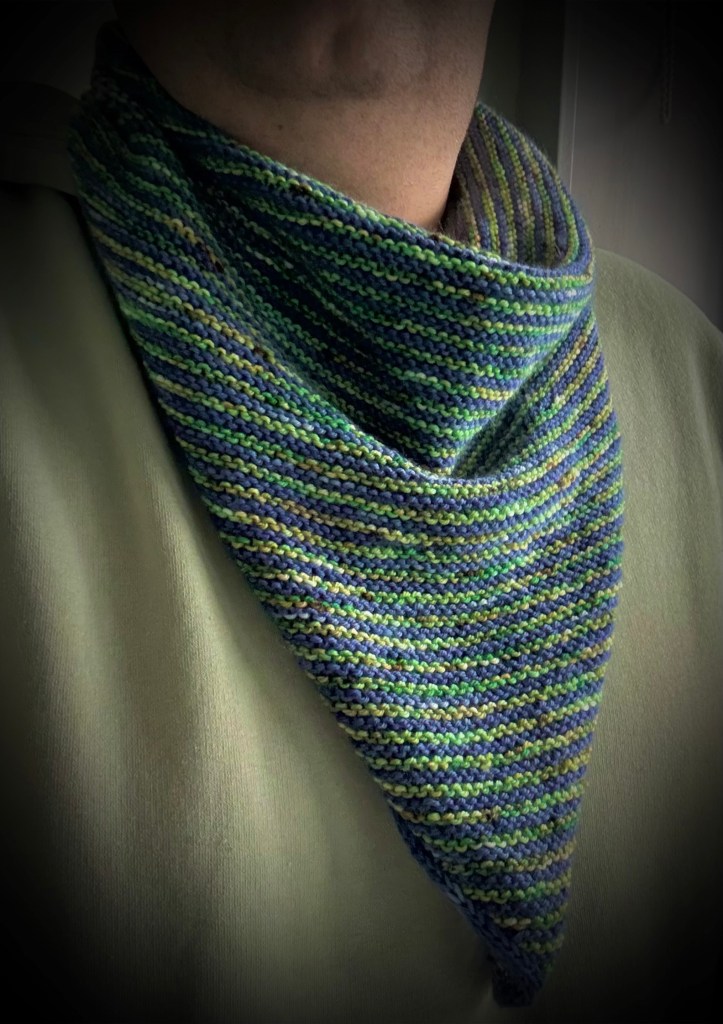Let me tell you some more about Veluwsch Verfgoed. The name is Dutch; Veluwsch is a term for a vast natural area in the middle of the Netherlands, the place where I live. Verfgoed is a combination of two words – dyeing and heritage. So, the yarn I dye is a heritage of the birthplace I live in. A full circle, if you ask me! I dye a variety of yarns, and each colorway represents a place, part, or story of the Veluwe. This also means most of the dyeing I do will have a connection with colors found in nature. You won’t find many vivid or neon-like colorwork from my hand. As I had to dye hundreds of skeins in a short amount of time, I didn’t really had the time to make a lot of samples with them already – but they will be there during this year. In a few weeks I will publish a new knitting pattern for a bandana with my VV-sock yarns! Here is a preview: