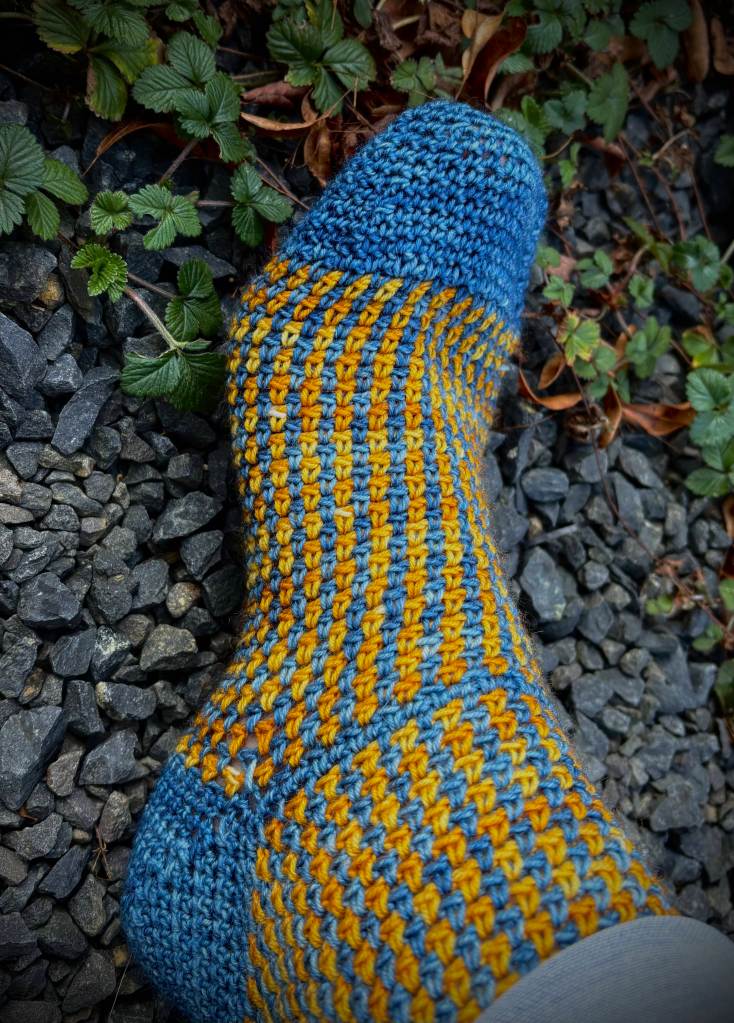 A new sock pattern! While dyeing a new yarn collection inspired by Vincent van Gogh’s paintings, I delved a bit deeper into them. I came across the technique van Gogh used to create most of his iconic paintings. By applying thick stripes of oil paint in an organic way to a canvas, he created beautiful art. This technique is called Impasto. So, inspired by the Impasto technique and my new sock yarn colors, I had to create a wonderful new sock pattern. The third pattern in my crocheted socks collection. It holds the base of the first two as well, and yet is different. A lovely crocheted sock with a beautiful pattern in it.