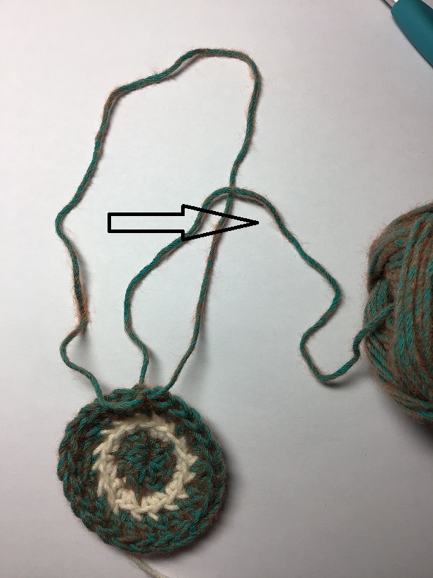 Now make the last loop of the slip stitch where you hook is in bigger. Big enough for your ball of yarn to slip through.