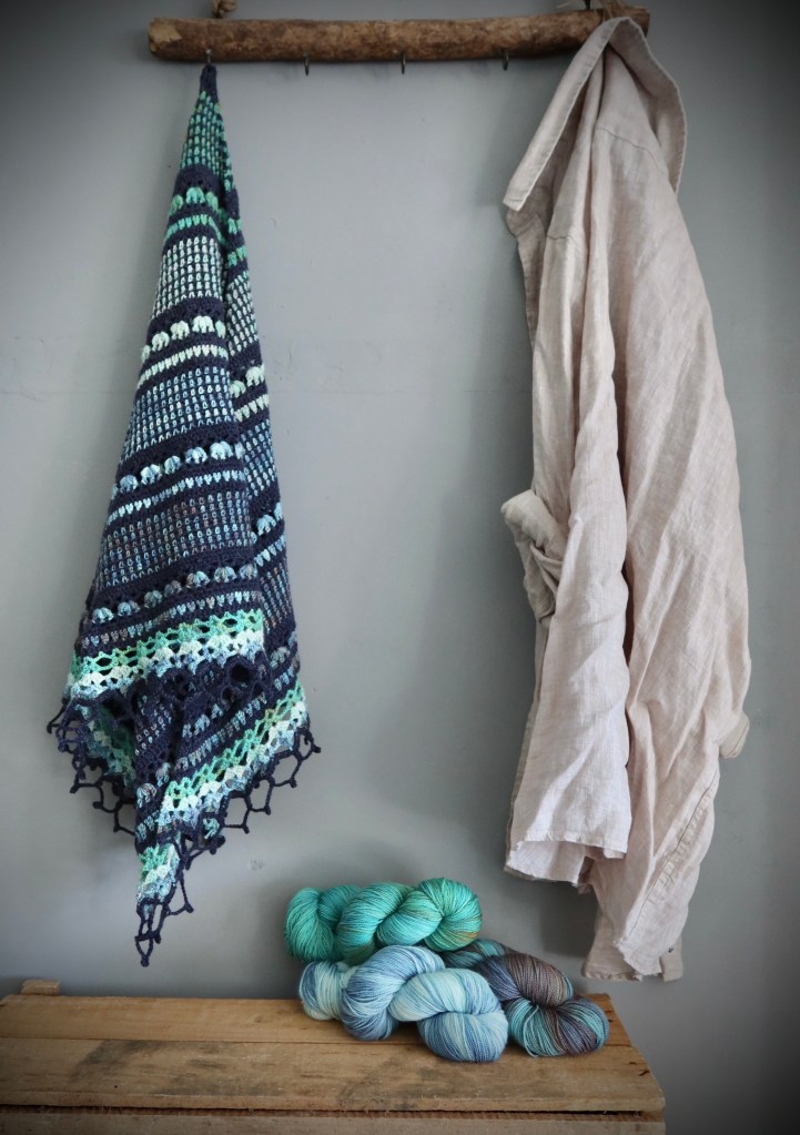 I used my hand-dyed yarns for the other colors – the Guy with the Hook’s hand-dyed yarns. This yarn comes in hanks of 100 grams with a length of 360 meters. This yarn consists of 80% superwash merino wool and 20% nylon. Of all colors, I used one hank of 100 grams. I used the following colorways: