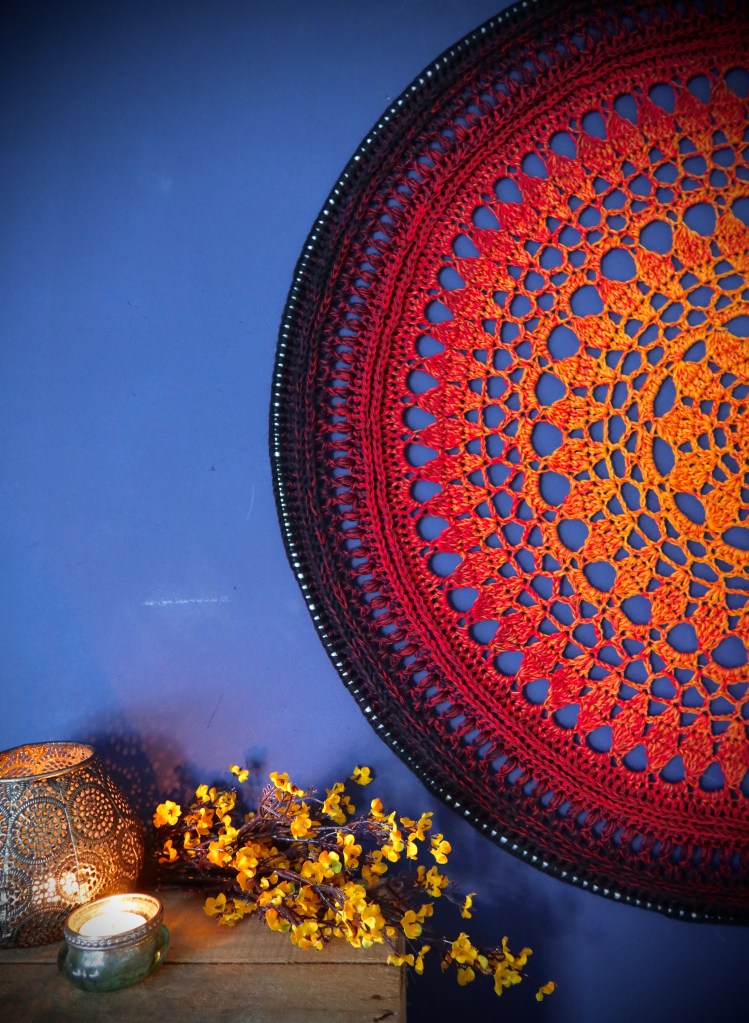 SIZE: The mandala’s diameter will be approximately 28 inches after blocking or crocheting it into a ring.