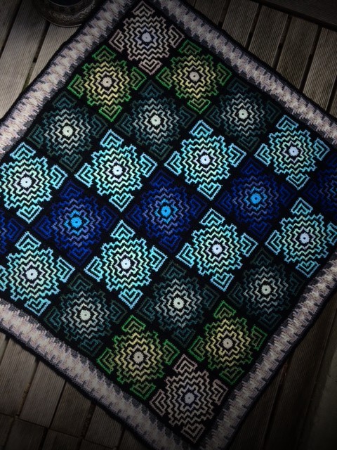 You remembered i posted a message a while ago working on the Trio blanket by the Felted button ? I told you there it was a long project that i worked on between different jobs and matters. But yesterday i finally finished it and it is stunning ! I really love how the color work... Lees verder →